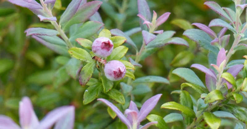 No, we did not sample the blueberries but instead left them for the wildlife to enjoy. If you have the right conditions, Darrow’s blueberry with its purplish new growth deserves a place in your yard.