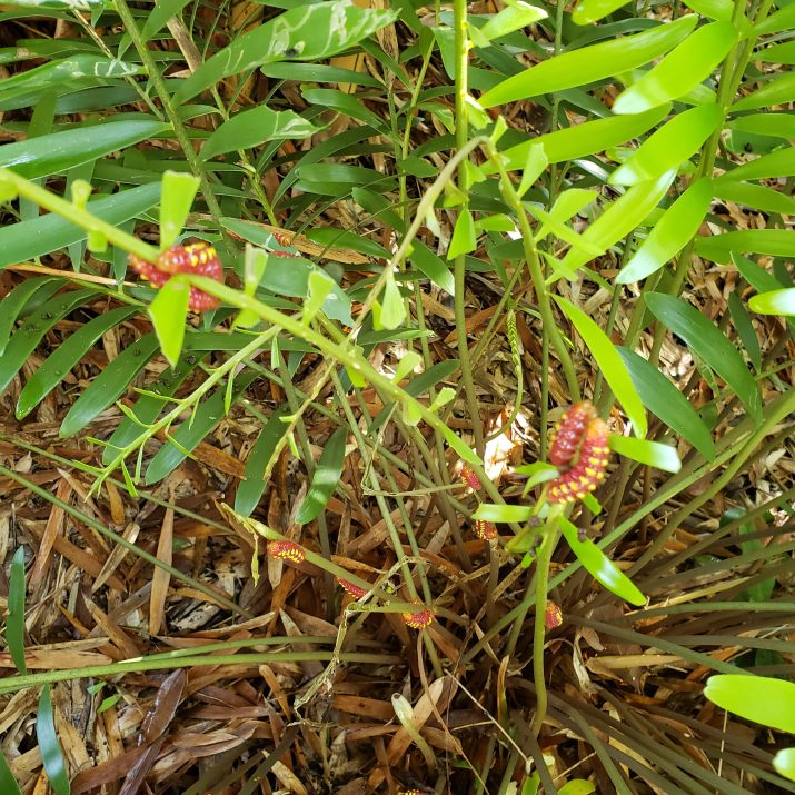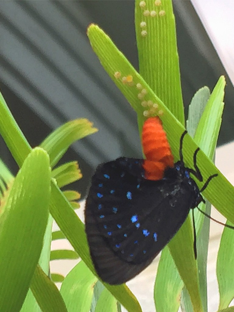 The atala butterfly (Eumaeus atala), once thought to be extinct, has expanded its range likely due the increased use/transport of its larval host plant, coontie (Zamia integrifolia), in landscaping, rearing/releases at Disney Wabasso Beach, and warming temperatures. The photo above was taken in 2016 about 5 miles north of Disney Wabasso Beach.