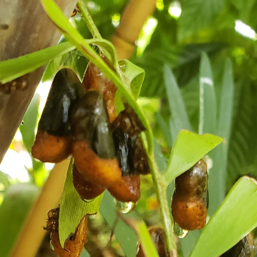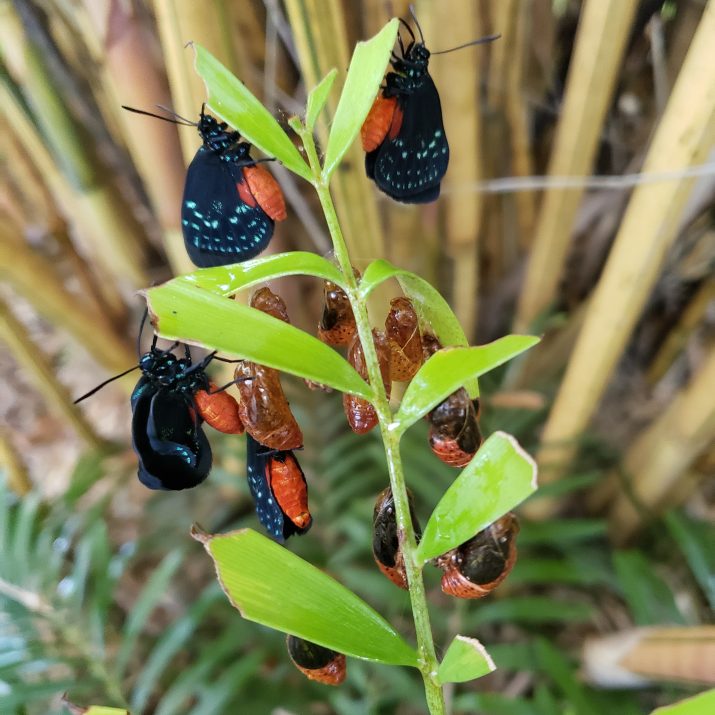 Chapter members Chris & Janet Waln sent these photos of atala butterflies about to emerge from their chrysalises. On 4 coontie plants, they had 20 chrysalises …