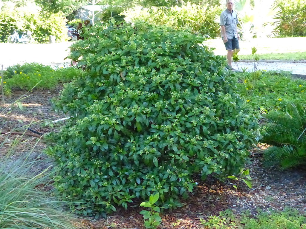 Bahama wild coffee naturally maintains an attractive round shape and, even underneath an oak tree in filter shade, is compact and full of flowers.