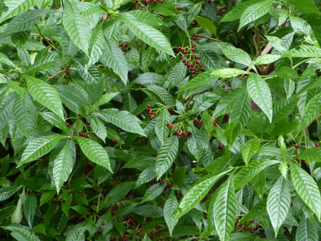 This wild coffee has crinkly leaves. The species name nervosa refers to this deep venation (nerves) on the leaves.