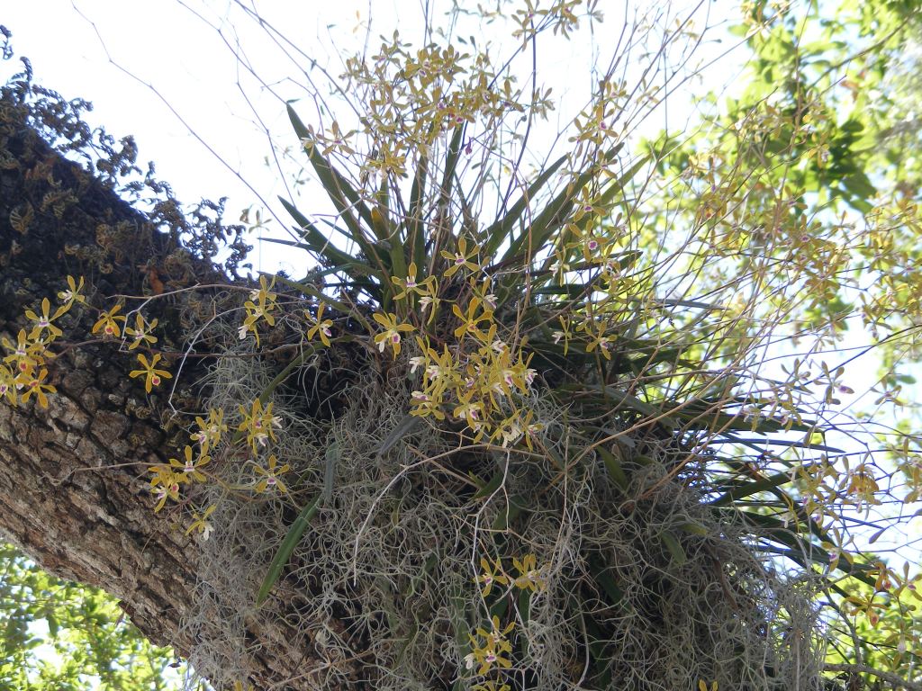 Gopher tortoises eat a variety of native plant species, many familiar to us. We all had a good laugh when Blayne said one of their favorite foods was Bidens alba, Spanish Needles! No, gopher tortoises don’t eat our dainty native butterfly orchid (Encyclia tampensis). A great specimen of a butterfly orchid on a live oak log provided lively bidding activity at our post speaker auction.