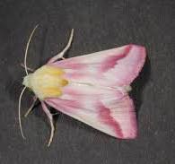 One plant we don’t commonly see during our yard tours is southern beeblossom (Oenothera simulans), above. Kathryn’s plants should inspire all of us to try this interesting native. The drought-tolerant, dainty-looking annual can provide diversity and interest for full sun locations. The blossoms are white when they open at sunset, and then they fade to pink the next day. Beeblossom is the larval host plant for the beautiful clouded crimson moth, below.