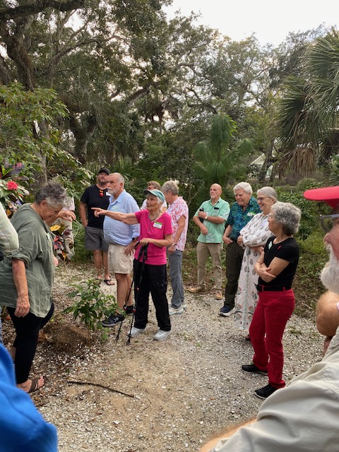 The live oak canopy habitat of the Flournoy’s neighborhood is part of the coastal maritime hammock found on the barrier island. Their native yard provides the perfect setting for several well-established understory species: Simpson’s stopper (Myrcianthes fragrans), shiny-leaf wild-coffee (Psychotria nervosa), beautyberry (Callicarpa americana), marlberry (Ardisia escallonioides), saw palmetto (Serenoa repens), and rouge plant (Rivina humilis). All of these plants are well-adapted to growing in Indian River County and are easily obtained, including from our native plant auctions.